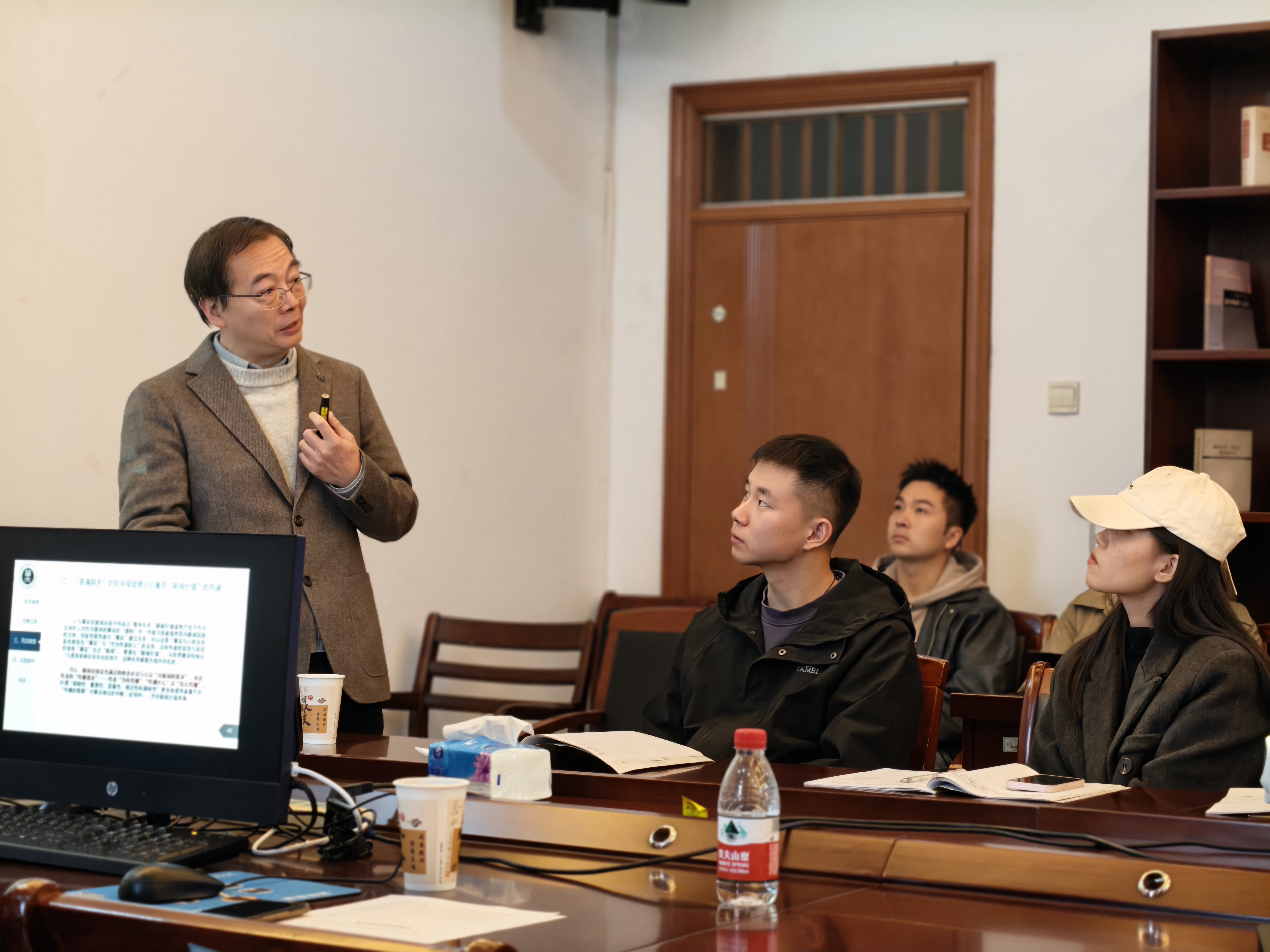 12月6日下午14时,华中师范大学新闻传播学院教授、博士生导师喻发胜应金年会邀请在7号学院楼404会议室作题为“普遍联系:马克思主义新闻学的重要哲学基石及其实践价值”的学术讲座。金年会胡文财副教授主持讲座,2023级、2024级新闻与传播专业全体硕士生及学院教师到场聆...