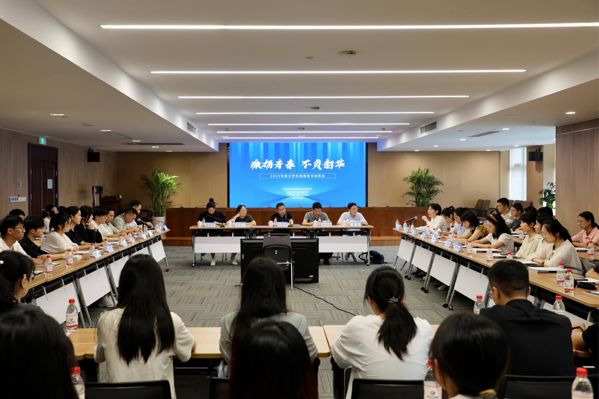 7月10日,学院党委副书记袁慧兰带领我校实习学生参加萧山区国研会举办的“激扬青春,不负韶华”2023年度大学生暑期实习动员活动,区产发集团党委副书记、区国研会秘书长孙余明、浙江工商大学经济学院党委书记陈世伟及党委副书记蒋豪、萧山团区委副书记戴梦瑶、各副理...