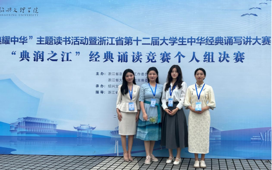 6月22日-23日,浙江省第十二届大学生中华经典诵写讲大赛“典润之江”经典诵读竞赛个人组决赛在绍兴文理学院举行,该项竞赛由浙江省语言文字工作委员会、浙江省大学生科技竞赛委员会主办,属于省级A类竞赛,本次共有54所本科院校的381名选手进入半决赛,其中43所本科院校的116名选手进入总决赛。我校由金年会jinnianhuicom王怀榕老师指导带队的选手在本次竞赛中获省级二等奖三项,她们分别是:法学院张烁、外国语学院韩雪以及金年会jinnianhuicom代现茹。此外管理学院高源阔和金年会jinnianhuicom钟欣妤在半决赛中获三等奖。