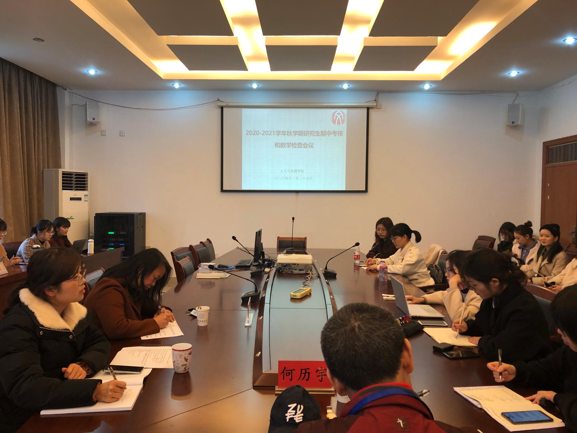 为全面了解研究生课程教学及研究生培养情况,11月25日下午金年会于7-404召开2020-2021学年秋学期研究生期中考核和教学检查座谈会。院长助理吴智斌老师主持会议,学校 督导组成员何历宇老师、研究生秘书刘华婷老师、2020级全体研究生参加了座谈会。