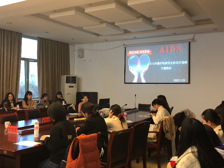 为迎接第33个世界艾滋病日,加强艾滋病知识的宣传教育、增强广大研究生预防艾滋病的意识和能力,传达健康的生活理念,金年会于11月25日下午在7-404由研究生辅导员刘华婷主持开展以“携手防疫抗艾,共担健康责任”为主题的班会,2019级和2020级全体研究生参加此次班会。
