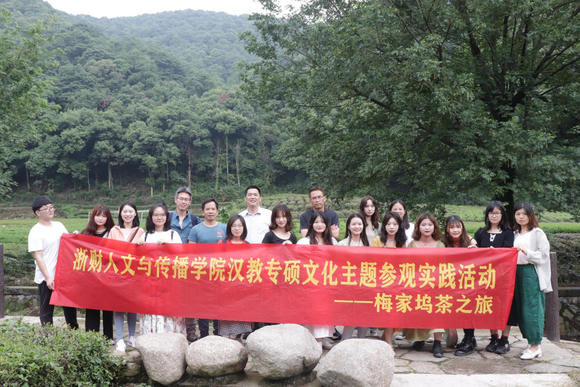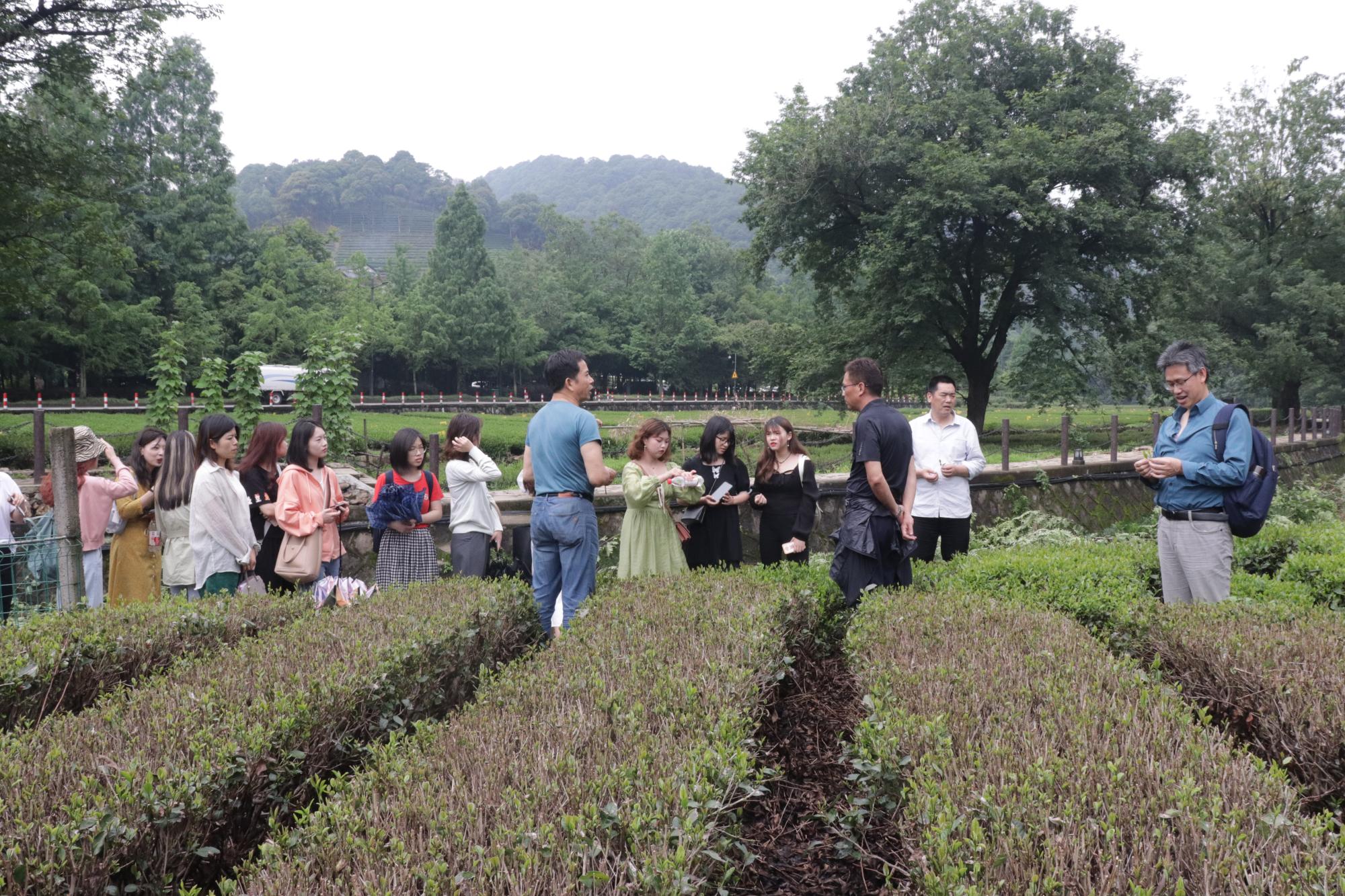 5月26日上午,金年会院长周保欣、汉教专硕点负责人刘传鸿、教授委员会主任赵顺宏及研究生辅导员刘华婷老师带领汉语国际教育专业硕士20余人一起前往著名的西湖龙井茶产地—梅家坞,开启了茶文化主题参观学习活动。