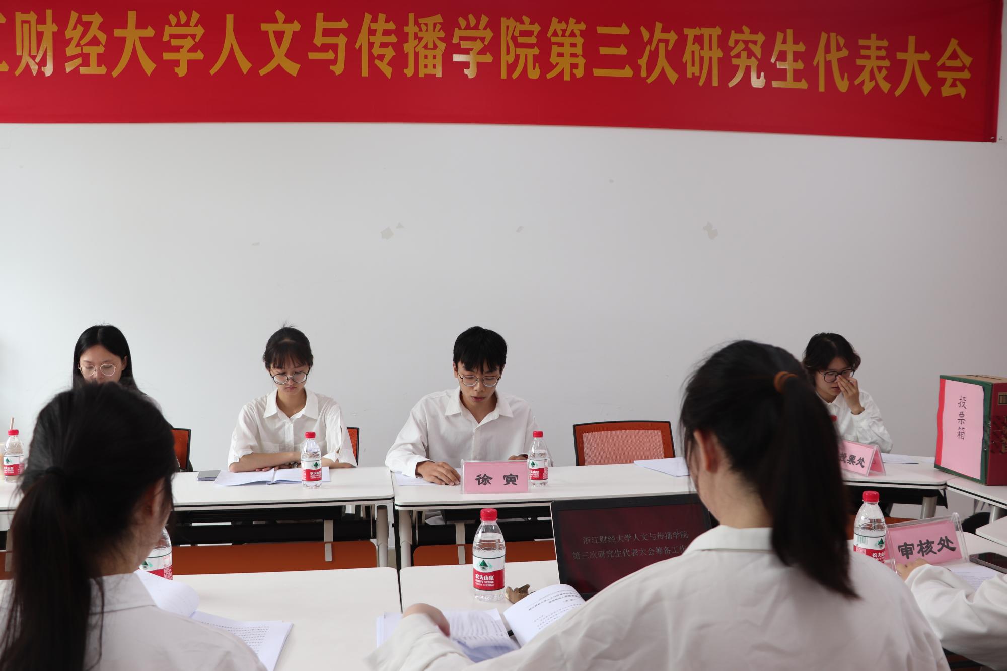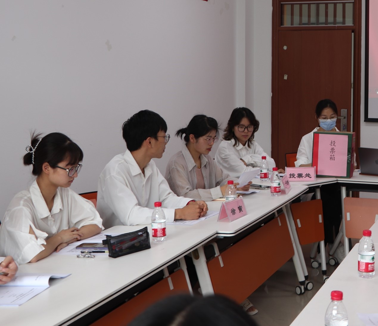 大会进行新一届金年会jinnianhuicom委员会委员和主席团成员选举,总监票人刘华婷老师全程核实,各研究生代表填写投票,计票人统计各候选人选票,最终由刘华婷老师宣布计票结果,选举卢慧珊、杨佳慧为金年会jinnianhuicom第三届研究生委员会主席团成员,白洁、卢慧珊、杨佳慧为金年会jinnianhuicom第三届研究生委员会委员。
