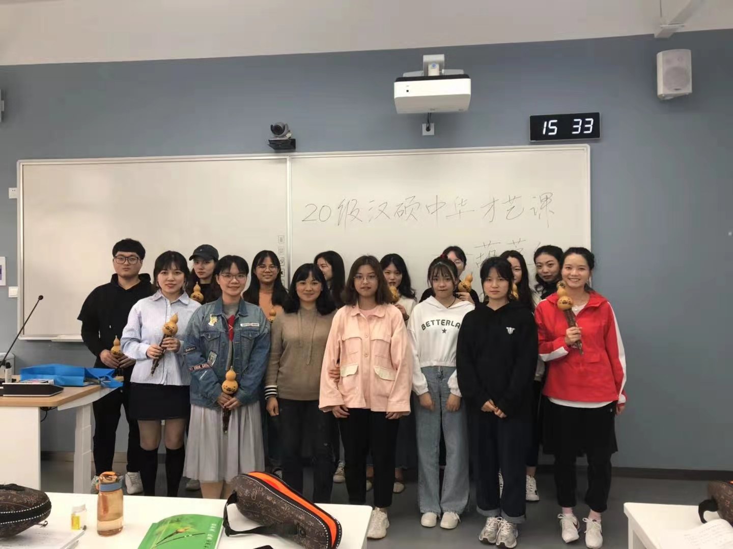 金年会于11月27日下午在A215教室开展中华才艺之葫芦丝第二次专题讲座。张梦平老师应邀主讲,付伊老师主持,全体20级汉语国际教育硕士研究生参加了本次讲座。
