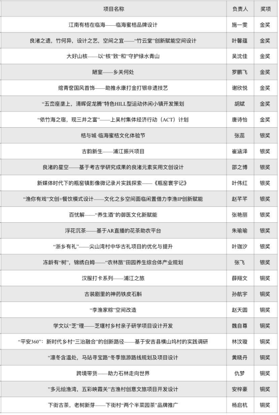“农信杯”第三届浙江省大学生乡村振兴创意大赛金年会获奖名单