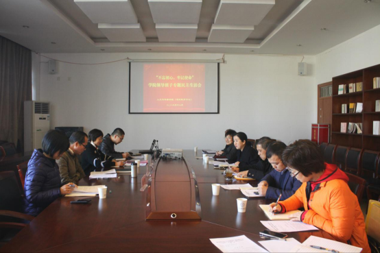 2019年12月10日上午,金年会领导班子“不忘初心、牢记使命”主题教育专题民主生活会在学院楼404召开,副校长王奎泉和校督导组全程参加并指导会议。学院党员领导班子成员参加会议,副院长姚红、付琼,学院教师代表王文奇列席会议。会议由党委书记高燕主持。