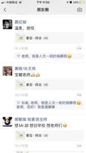 “春至·师说”系列专栏活动在学生中引发了大量关注与转发,取得了良好的教育效果,受到学生和家长们的热捧。16级文学专业费同学留言,“感谢老师们的挂念,见字如面,闻声如晤,那么亲切,依然是坐在课堂里听课的感觉。”17数媒郝同学留言朋友圈“好想回学校,好想老师们”;18文传班的陈同学点赞老师们,说他们都是“宝藏老师”;19级文传4班吴同学留言:“感谢老师们挂念,我会更努力,期盼再相聚”;18级陈同学家长留言:“今天看了好几遍,听了好几遍,仅是听老师们朗读就令人沉醉了”