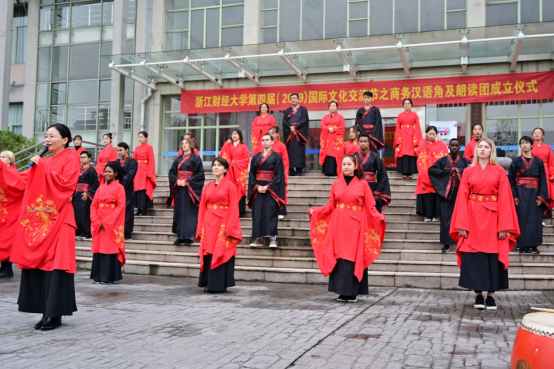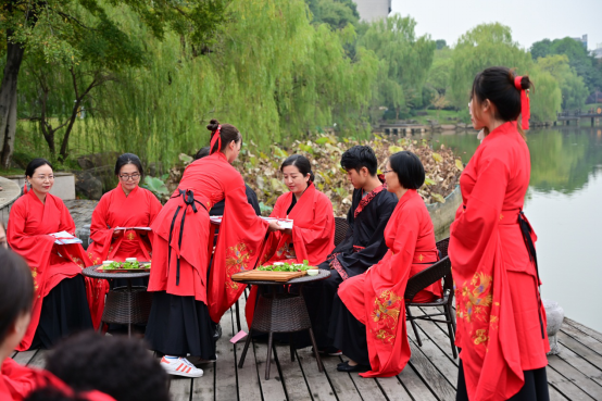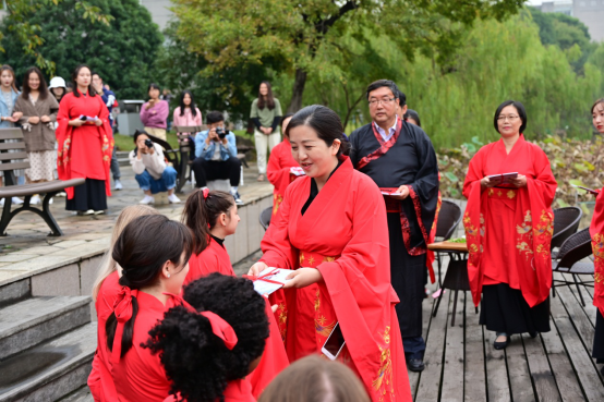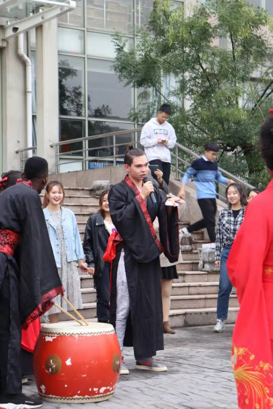 进入诗歌吟唱环节,一首由金年会jinnianhuicom朗读团与留学生共同朗诵的《诗经·木瓜》,把人的思绪带入了中华传统文化无垠的长河里。百转千回、意蕴深远。在击鼓明志环节中,一声声清脆有力的鼓响寄托了老师们对学子们殷切的期盼,也饱含着学子们励志向学奋发前行的学习热情。