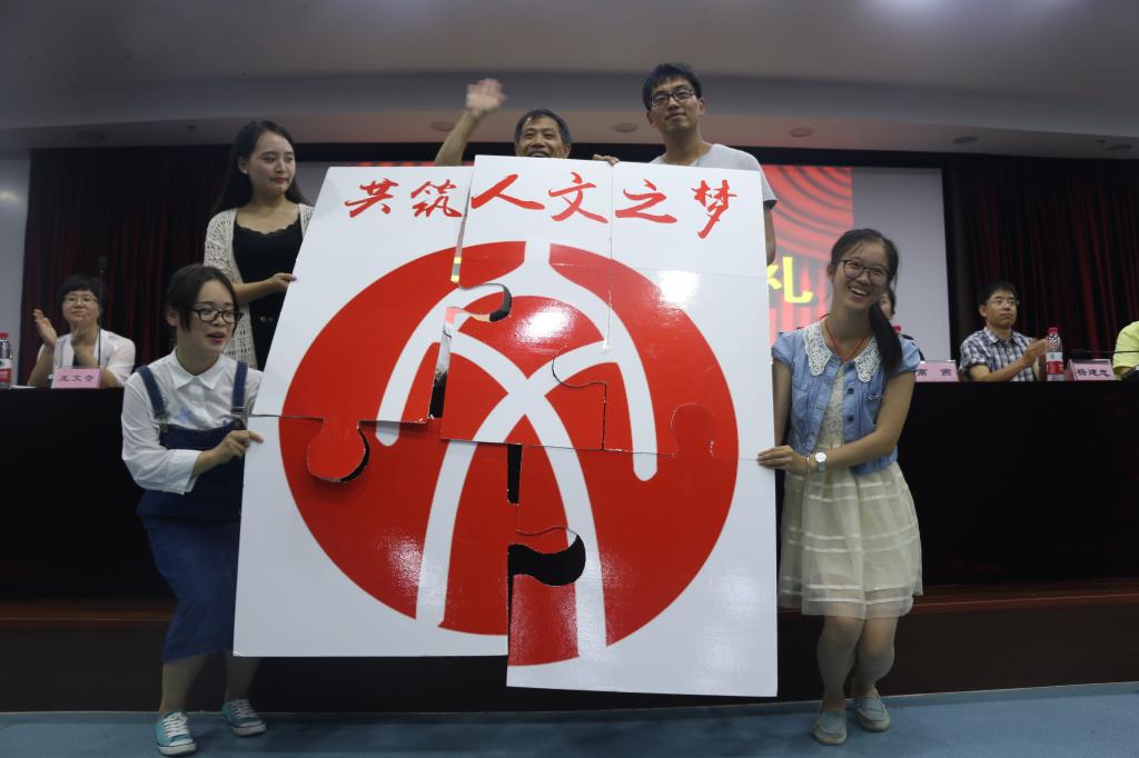 随后,中文系主任吴时红老师、国际汉语系主任孙德平老师、传播系主任李漪老师、数字媒体系主任王文奇老师分别为新生送上了入学寄语,表达了对新生的鼓励和期许。最后,院长、校友、在校本科生代表、本科新生代表、研究生新生代表一起拼起了“人文院徽”,共筑人文之梦。