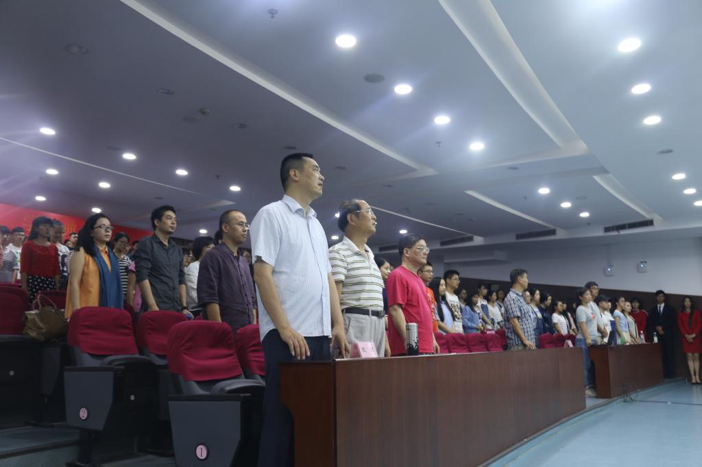 朗朗金秋,丹桂飘香。9月22日下午,金年会2015级新生开学典礼在学术四报告厅隆重举行。院长何华珍、党总支副书记(主持工作)高燕、副院长姚红、副书记吴玻、院长助理杨建忠和系主任出席典礼。典礼由吴玻老师主持,人文学院全体教工和2015级本科生、研究生参加。