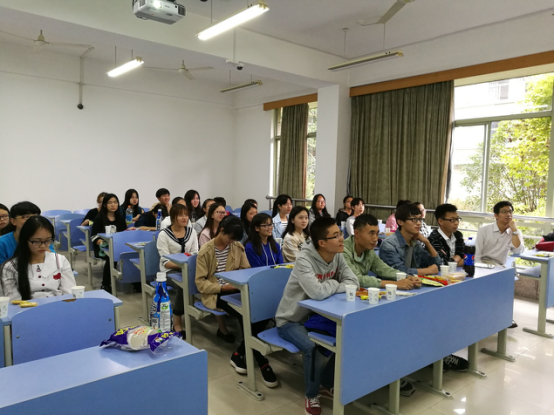 然后,帅气的系主任孙德平老师又和同学们谈了与汉语国际教育专业学习、就业相关的事情。他给我们推荐了一些与专业相关的书,让我们更好地了解自己的专业。关于大学选课,他也做了一些介绍。并告诫我们:选课要趁早!这让我们对选课的顾虑削减了不少。