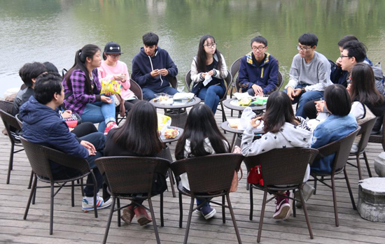 最是书香能醉人,读书之乐乐无穷。马克思说过:“如果你想感化别人,那你就必须是一个实际上能鼓舞和推动别人前进的人。”学院立足学科特色,将优质的教学科研资源转化为大学生思政工作资源,立足文化传承,充分发挥了教师在学生培养中的主导作用,打造了师生共同参与的“湖畔人文”和“始业沙龙”两大平台,拓展了“教书育人”的内容和形式。6年来“湖畔人文”沙龙活动持续开展,老师们踊跃参与,学生们尽情享受,“书法与修身”、且听“诗”“歌”、品茶说茶、词情密钥等等内容广泛、形式自由、环境轻松的沙龙活动深受学生喜爱。古代文学的汤燕君老师说:“学术沙龙,因其学术性、思想性、大信息量、寓教于乐的特点,已经成为学生思想政治教育的一种新途径。”学院正是通过各类学术沙龙,在文化传承中把“完善人格、陶冶情操、增长知识、开阔眼界”这一宗旨贯穿于育人全过程,通过教师与学生的交流、探讨,以扎实的学术功底剖析优秀文化的内涵,讲好中国故事,用传统文化中的优秀因子感染学生、启迪学生、陶冶学生,增强师生的文化自信。