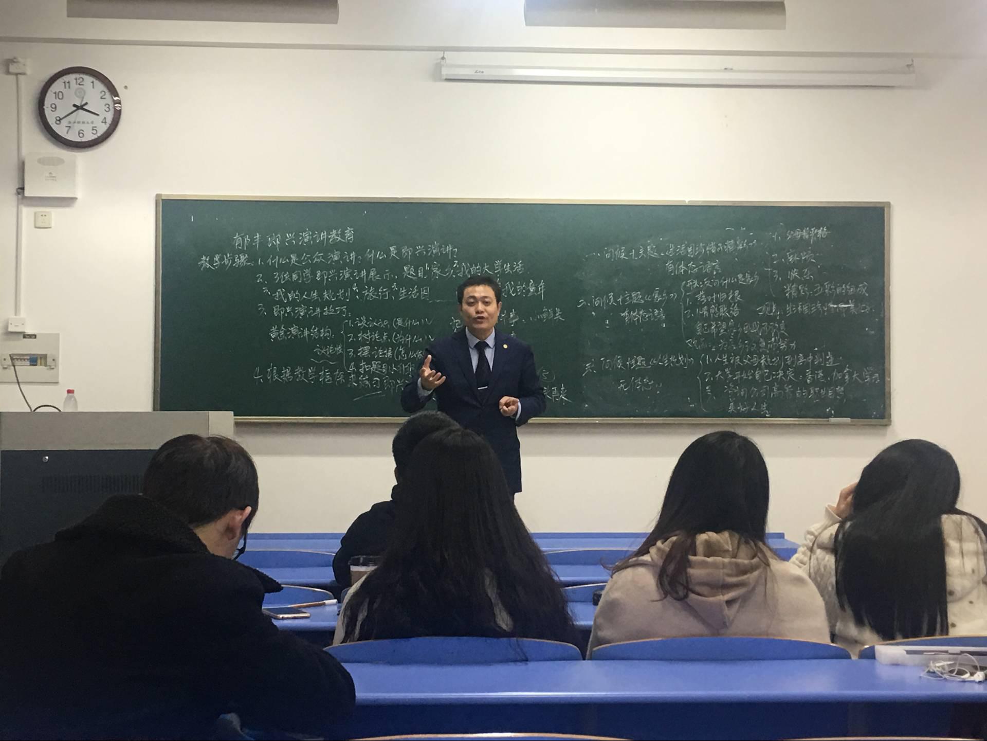 由金年会教师集体承担的《演讲和口才》是校级通识课,是一门注重实训的课程。如何将演讲理论技巧和口才实践有效地结合起来,做到使学生真正受益,这是团队老师一直不断探索的课题。12月15日下午,金年会荆亚平老师的《演讲与口才》课堂,迎来了一位真正的演讲家——李郁丰先生,为同学们带来一堂别开生面的演讲课。