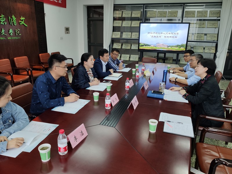 高燕书记对浙江师范大学人文学院的热情接待表示感谢,向他们介绍了学院近几年在师资、学科建设、专业建设、人才培养等方面的基本情况。她表示,浙江师范大学人文学院党委在党建引领、支部书记“双带头人”培育、学院文化建设、人才培养等方面有很多好经验、好做法,2018年获得“全国党建工作标杆院系”称号,“三融三促”党建示范群入选首批全省高校党建示范群。希望通过此次学习调研,搭建起长期交流互助平台,互通有无,在推进学院各项事业发展上共同进步。