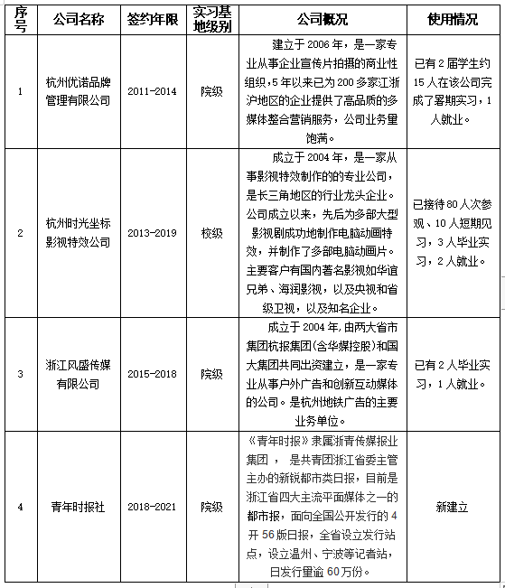为保障专业与市场接轨,近年来,我们和行业建立了实践教学基地,具体见下: