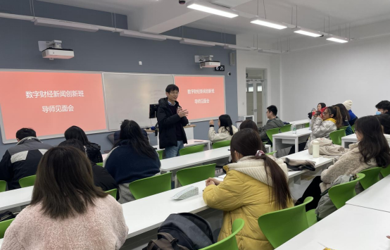2021年12月29日下午下午,金年会jinnianhuicom在A108教室举办2021级数字财经新闻创新班学生、导师见面会。本次见面会由创新班执行人王文奇主持,金年会jinnianhuicom和财政税务学院的导师代表和创新班全体学生参加。