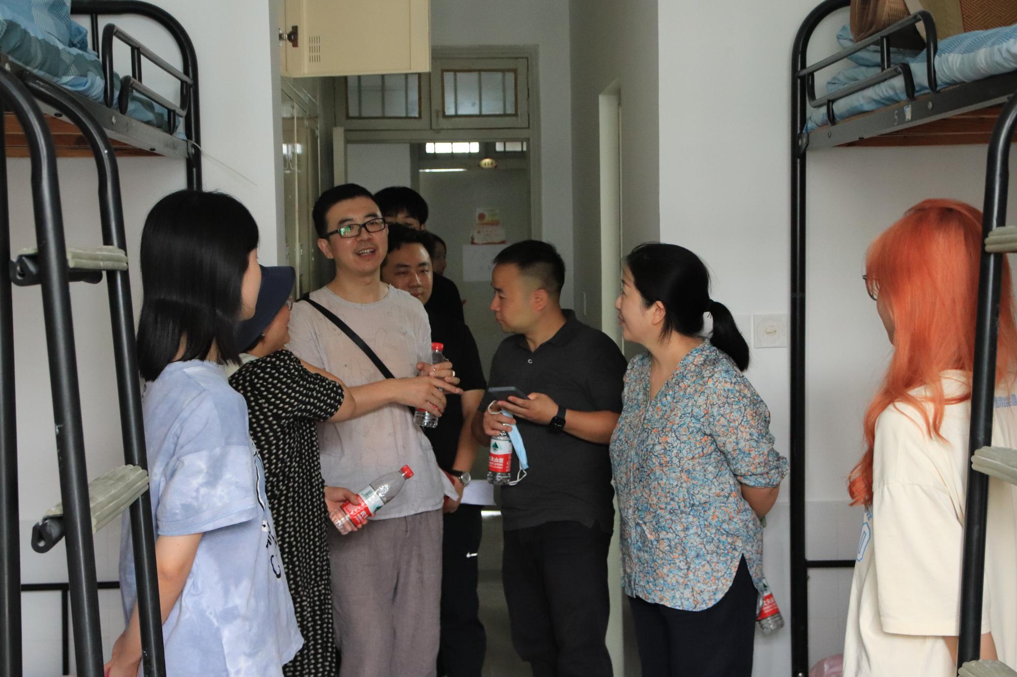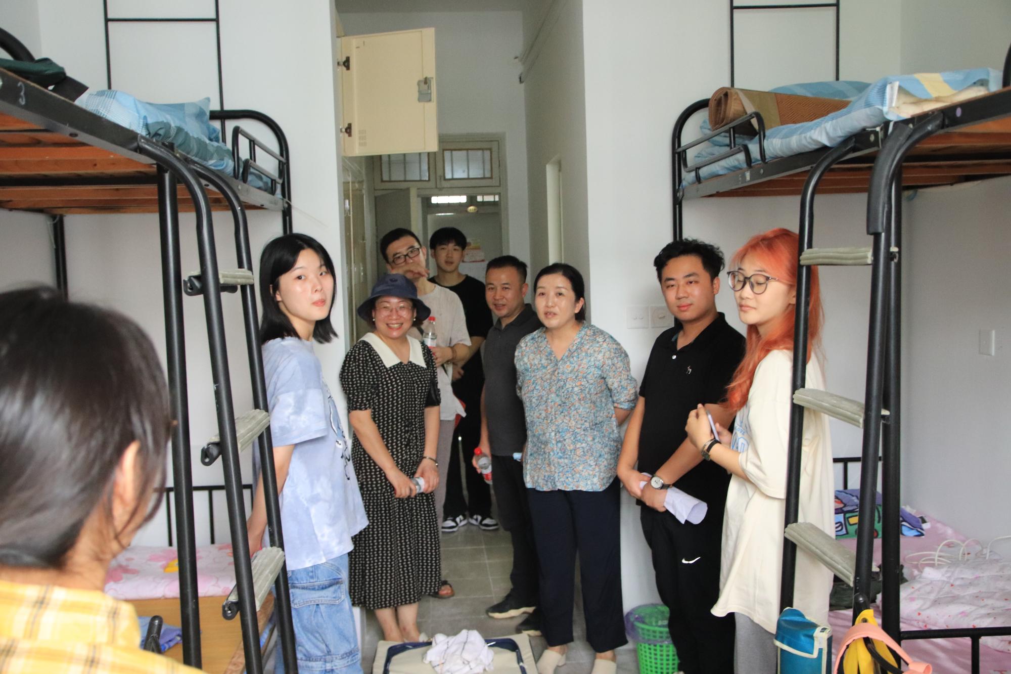 暑气渐消,微凉的风送来2022级的新生。8月28日,金年会jinnianhuicom222位新生在现场工作人员的帮助下顺利完成报到,开启崭新的大学之旅。同日下午,金年会党委书记高燕老师,副书记袁慧兰老师,两位新生班主任王阿蒙老师、胡文财老师,以及辅导员马羚凯老师来到迎新现场,问候迎新工作人员,随后走访新生寝室,热情聊天互动,拉进了彼此的距离。