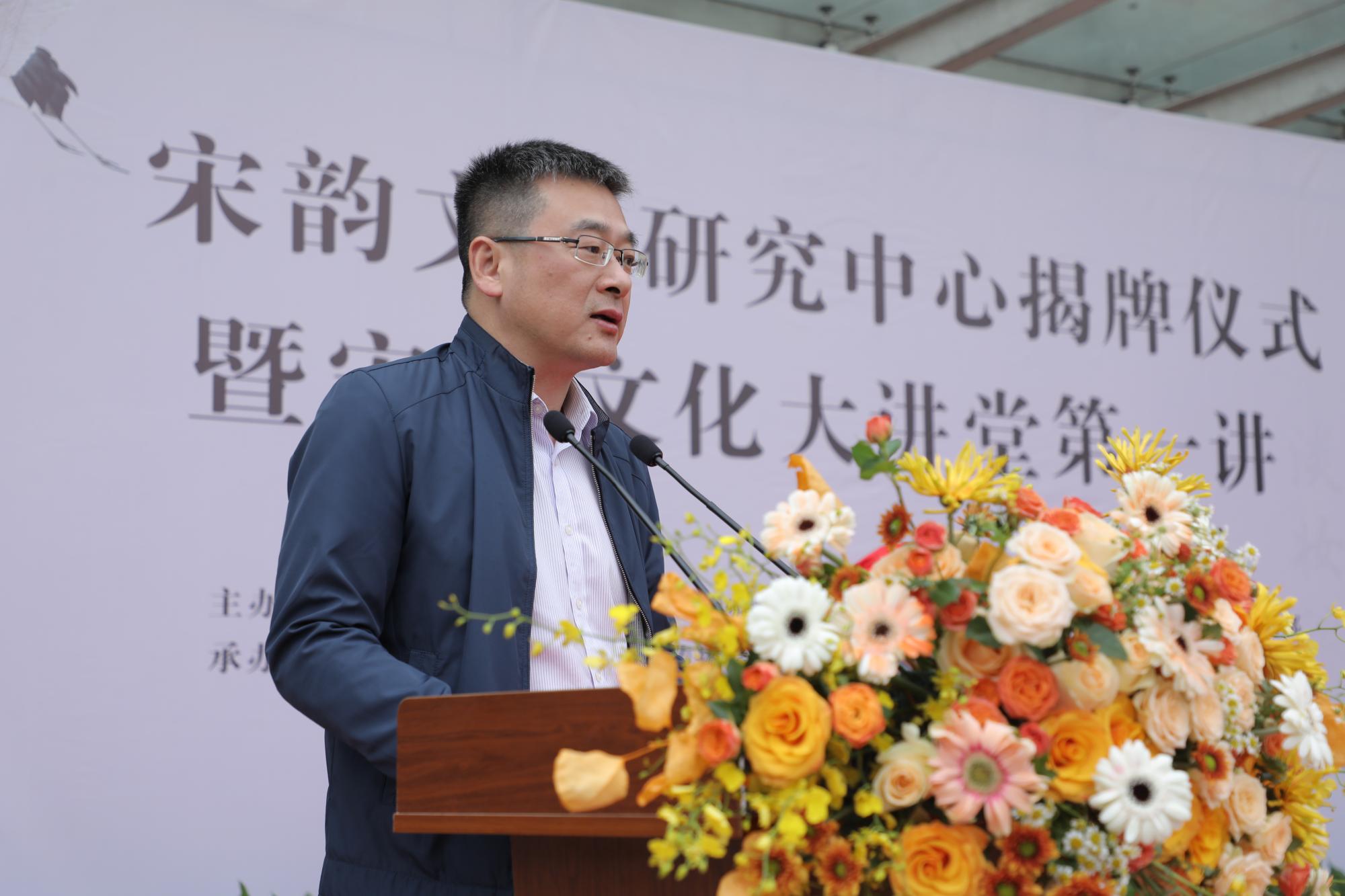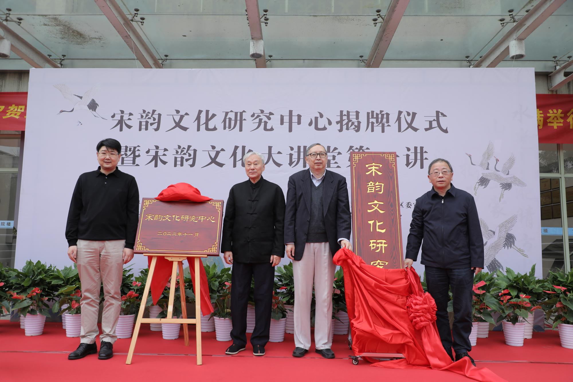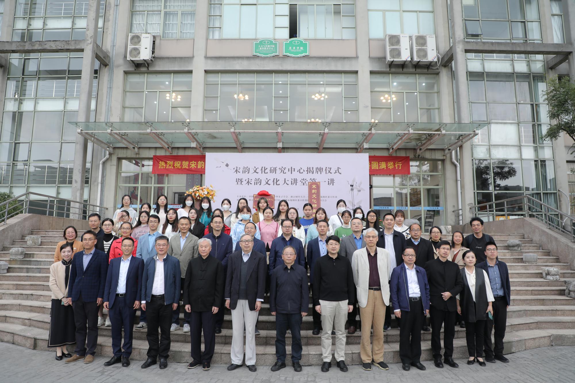 为积极响应浙江省委文化工作会议中提出的打造“宋韵文化传世工程”的号召,金年会jinnianhuicom与中共钱塘区委宣传部、钱塘区社科联合作共建“宋韵文化研究中心”。中心揭牌仪式于2022年11月3日在学涯湖畔举行。清华大学国学院院长陈来,华东师范大学终身教授朱杰人,复旦大学特聘教授何俊,浙江工业大学原副书记肖瑞峰,厦门大学人文学院副院长朱人求,校党委副书记、校长钟晓敏,副校长徐晓东,校党委委员、组织部、宣传部、统战部部长楼胆群,钱塘区委常委、宣传部部长李鹏,钱塘区社科联主席贺学兵以及相关职能部门负责人、金年会jinnianhuicom师生代表出席仪式。
