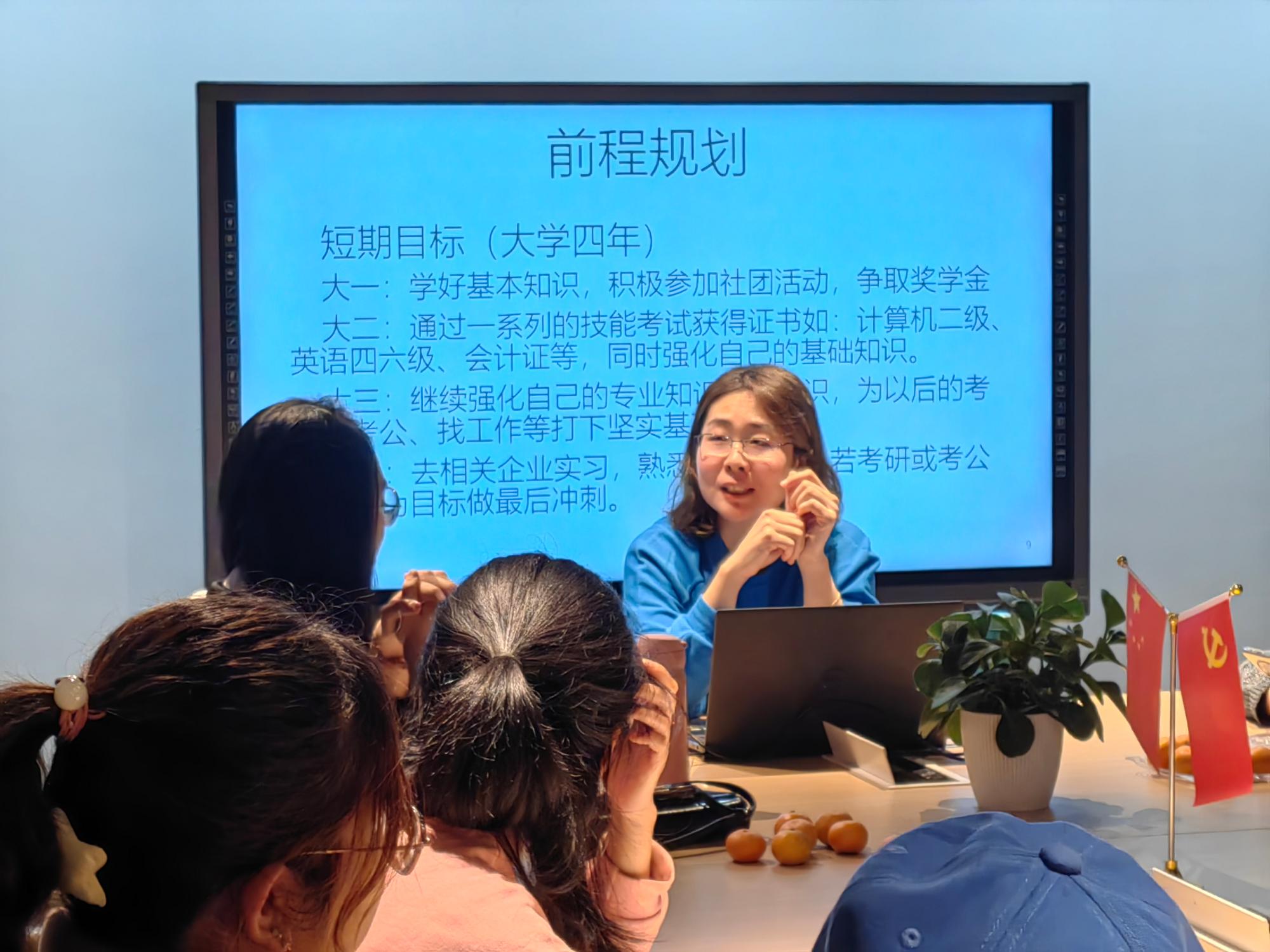 为了加强新生对专业认知,做好生涯规划,同时推进思政工作进园区,11月28日晚上,金年会jinnianhuicom在学生生活园区“偕行书院”举行了“2022级新生始业沙龙”活动第七期。来自金年会的任玉函老师作为本次活动的主讲,以“写给四年后自己的一封信——大学生涯规划”为主题,与同学们交流讨论大学四年应当如何进行合理的规划与安排。同时,本次沙龙还邀请了会计学院的20级学生项苏锐来分享自己过去两年的经历与接下来的规划。辅导员顾雨濛以及22文学3班全体同学参加了本次活动。
