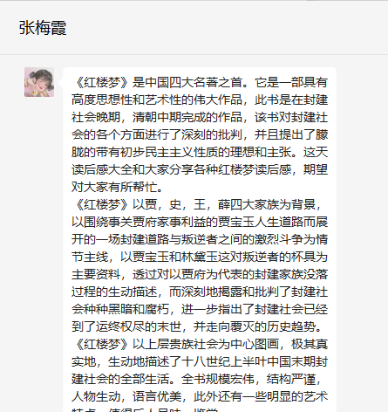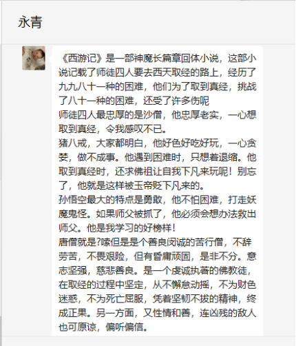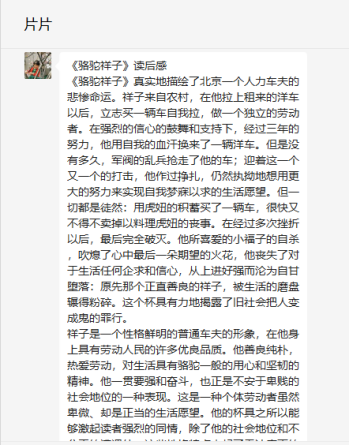 老师们纷纷响应,将自己的读后感分享出来,《红楼梦》、《西游记》、《骆驼祥子》等等,大家徜徉在书本的海洋,感受阅读带来的快乐和幸福。