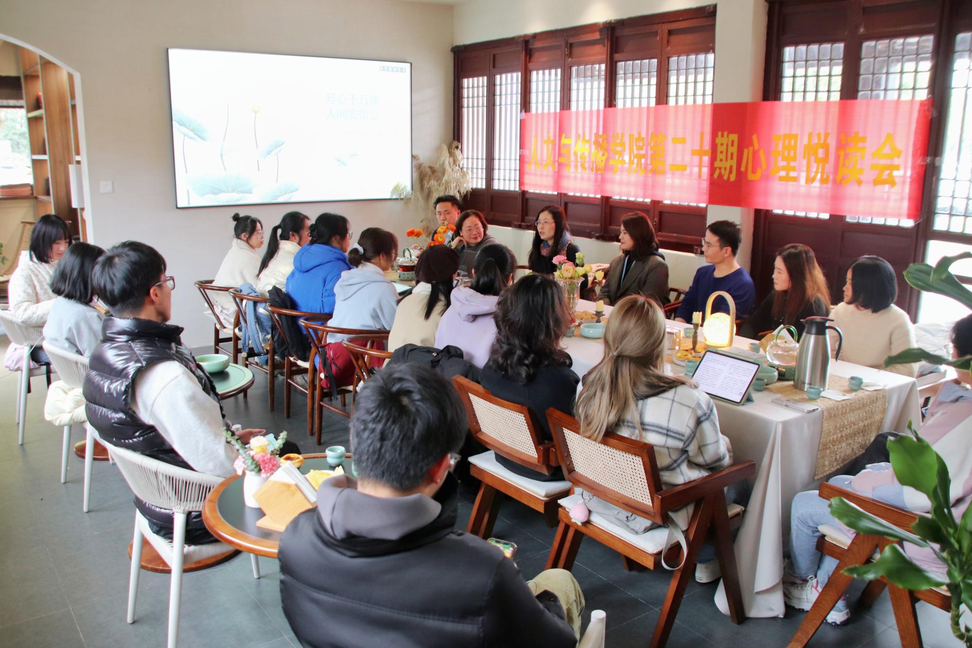 2月28日下午,仲春令月,时和气清,金年会jinnianhuicom第二十期心理“悦”读会在下沙三沐书苑举办。本次读书会由崔霞老师主讲,袁慧兰老师主持,吴智斌、毋丹、徐键、史婷婷、毛婉婧、马羚凯等老师参加,二十余位同学围桌而坐,共同走进吴晓波的《人间杭州》。