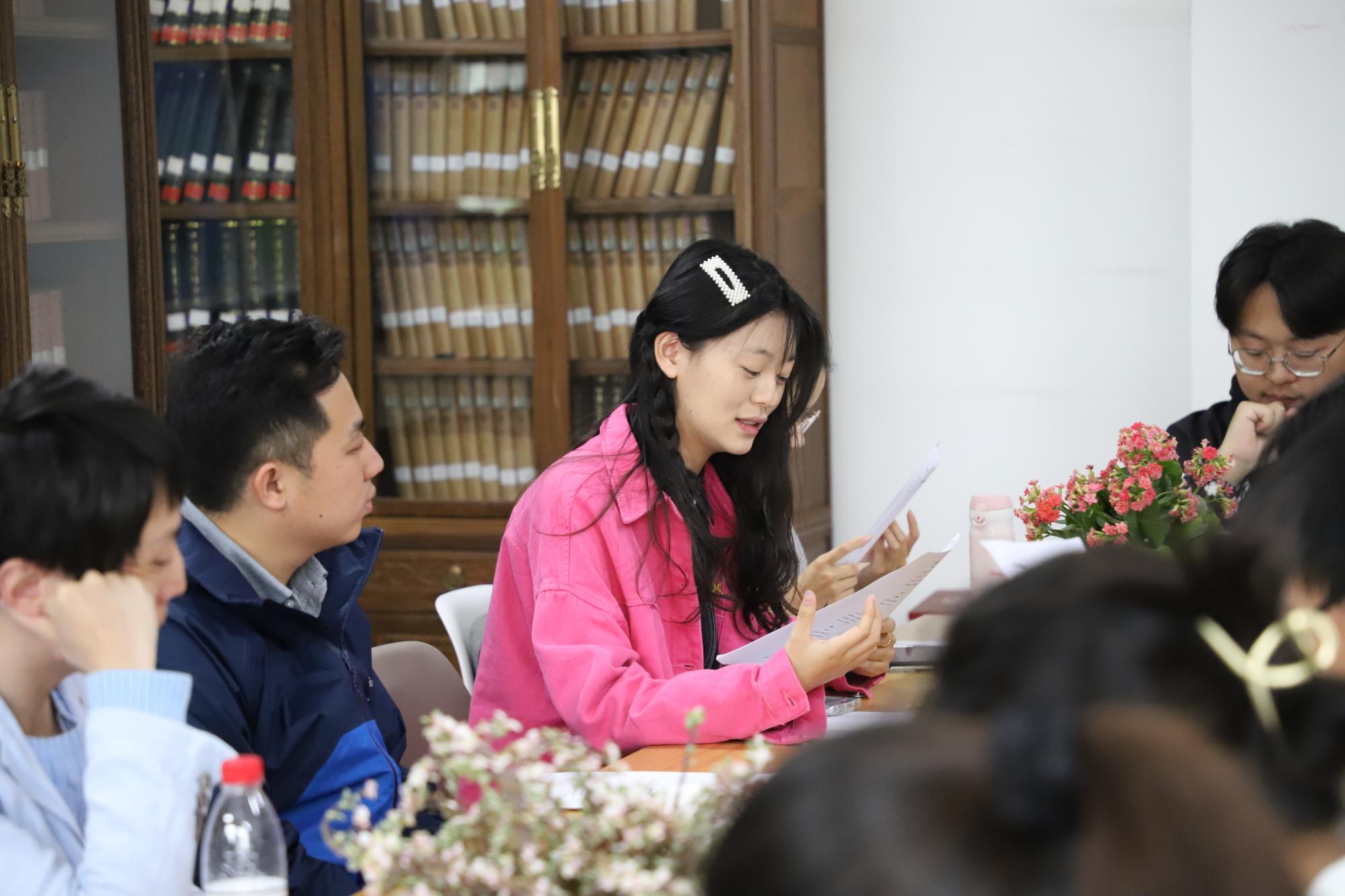 4月25日下午,暮春时分,淡云往来,金年会jinnianhuicom第二十二期心理“悦”读会在7号楼415举办。本次阅读会由熊啸老师主讲,袁慧兰老师、马羚凯老师以及二十余名同学携着千年前古人的沉思齐聚一堂,共同鉴赏古诗韵趣,分享生活点滴。