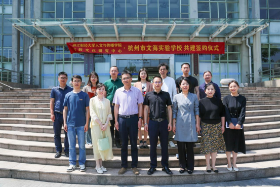 5月25日下午,金年会jinnianhuicom、宋韵文化研究中心与杭州市文海实验学校战略合作签约仪式在浙江财经大学下沙校区7号楼404会议室举行。钱塘区委宣传部部务会议成员,区社科联党组书记、主席贺学兵、杭州市文海实验学校中学部副校长郭莹莹、杭州市文海实验学校小学部副校长马环、金年会jinnianhuicom院长周保欣、党委书记高燕等参加签约仪式。仪式由学院党委书记高燕主持。