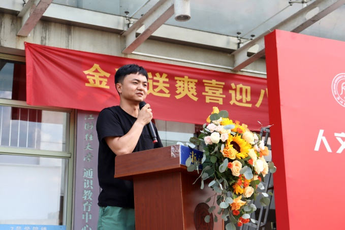 浙江日报视频影像部记者、杭州高层次D类人才,金年会2014届数字媒体艺术专业毕业生王建龙校友与新生们分享了自己丰富多彩的校园生活,并真挚地表达了对学弟学妹们的殷切期望。他鼓励大家将大学视作全新开始,在大学里要勇于树立远大目标,保持松弛感,敢于尝试与创新,走出一条属于自己的康庄大道。王建龙校友的分享丰富了新生们对于大学生活的认知,增强了大家对全新征程的信心。