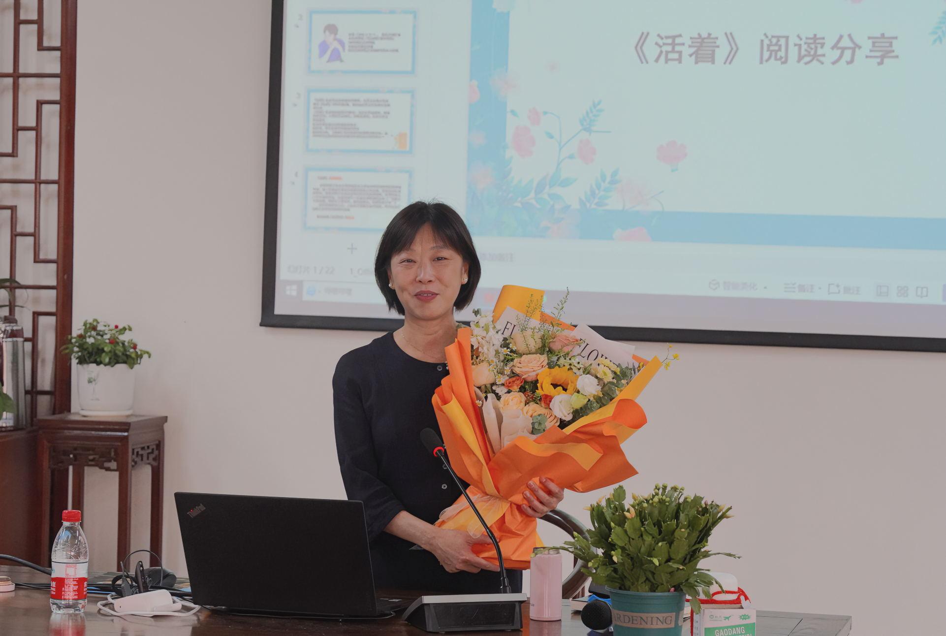 紧接着,黄老师也分享了自己的阅读感受:初读《活着》,荒诞、悲痛、直击心灵,但是经过数次的品读,于不同的年龄阶段,又从福贵悲惨的经历中读出了新的感动与启迪。