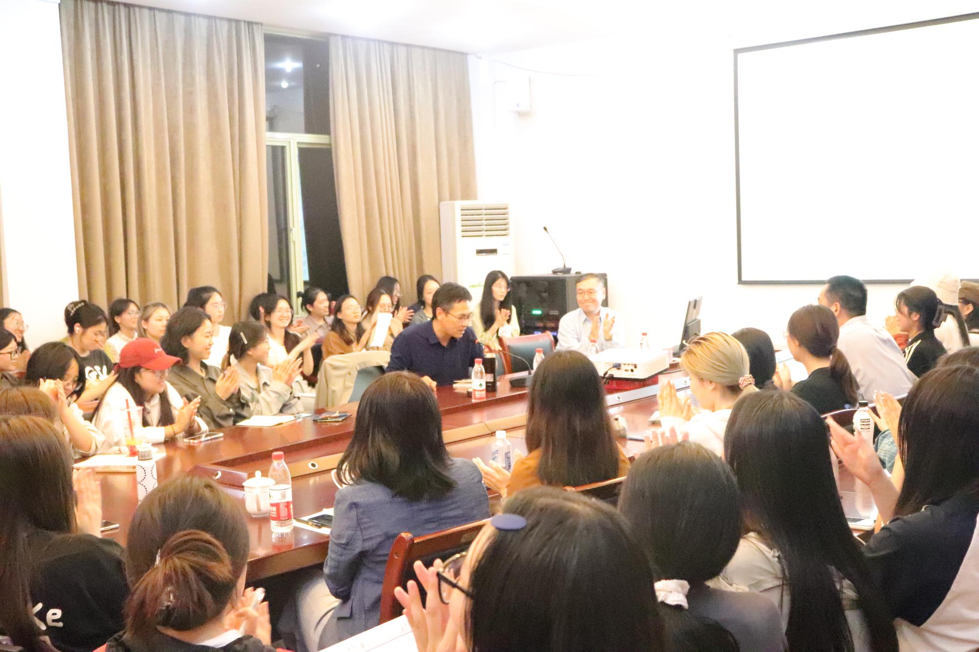 吴晓东教授的讲座深入浅出,在场学生踊跃发言,提出了“如何看待沈从文在不同创作时期对于美的理解?”“沈从文感性的表达背后是否有着理性的思考?”“在文学研究中,如何通过文本中的‘所说’和‘所示’,抵达现象背后潜藏的哲学意义?”针对同学们的热情提问,吴晓东教授耐心倾听,并一一细心解答,讲座在热烈的掌声中圆满结束!