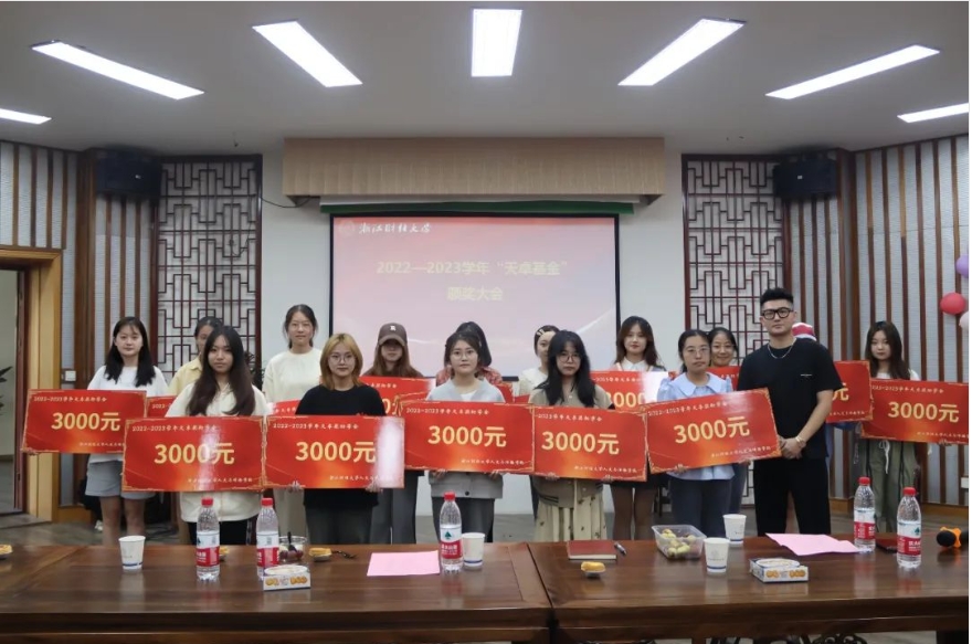 座谈会上,学院举行了“天卓助学金颁奖仪式”。天卓助学金是由金年会12级广告专业校友詹天卓设立,天卓奖助学金不仅是对学院良好发展与运转的有力支持,更是对人文学生秉持进取精神的鼓舞。在颁奖仪式上,詹天卓校友鼓励同学们积极进取,并倡议校友们尽己所能,给予学生经济与心理上的支持,为人文学院的持续发展服务。随后,高燕书记宣读2022-2023学年天卓奖助学金获评名单,并由詹天卓校友为他们颁奖。