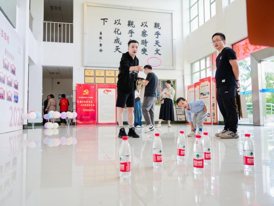 学涯湖畔忆往昔,人文大厅抚年华。在人文学院楼一楼大厅,金年会为2013届重返校园的学子们准备了以“语文”“摄影”“体育”为主题的游戏。在“语文”关重回校园考场,一道道文学常识题彰显校友充沛的专业知识。“摄影”关准备了校园各个角落的照片,十年过去,校园的一草一木、一楼一影仍然印在学子心中。通过最后“体育”关的投壶游戏,校友们来到抽签处抽取专属自己的纪念徽章、明信片、马克杯等浙财特色纪念品。