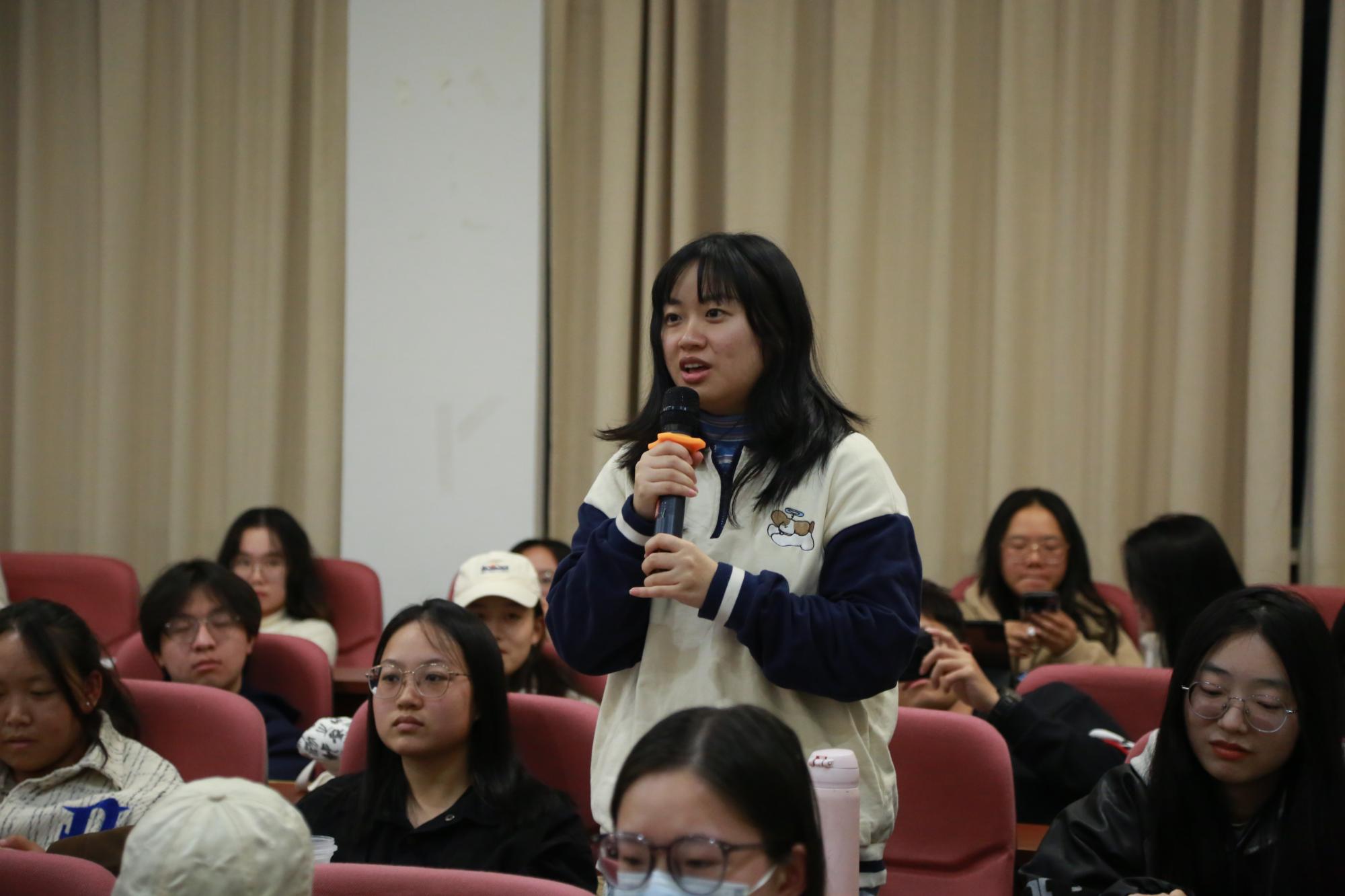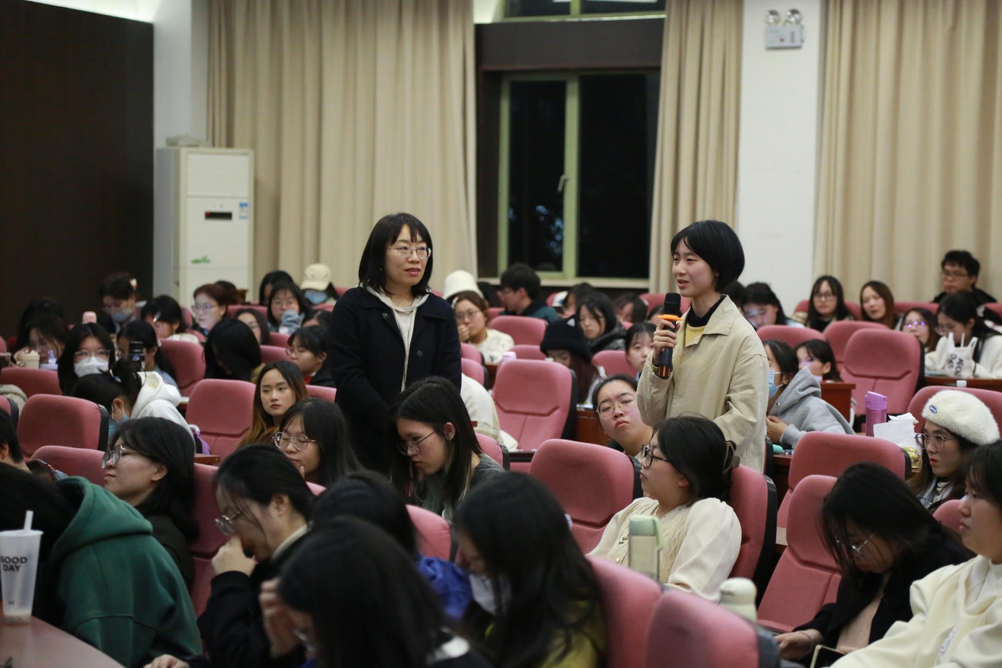 杨杨教授则从个人阅读史、治学经历和教育理念展开,建议同学们多读书、多读好书。书籍能够开阔视野、增长见闻,有助于培养问题意识。对于学术研究而言,学问是冷板凳坐出来的,研究者应潜下心来收集、阅读档案等文献史料,以对作家作品作出整体性把握。杨杨教授还以茅盾《子夜》对陈忠实《白鹿原》的影响为切入点,指出鲁迅、郭沫若和茅盾对现当代长篇小说史诗风格的潜在影响,并建议中文系的学生可通过“多逛书店”“多买书”来完成“多读书”这第一要务,从而形成自己的专业竞争力。