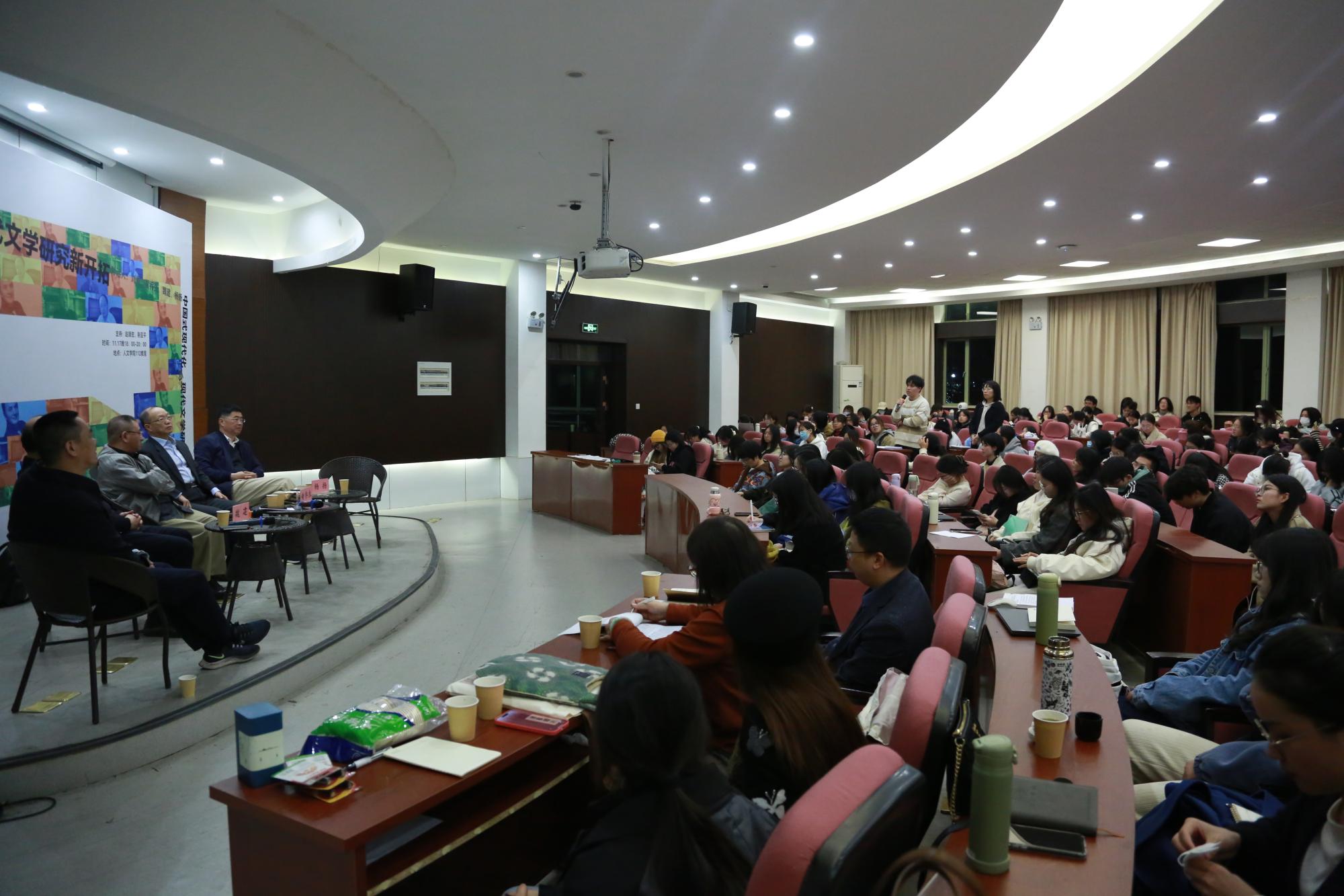 四位教授的对谈深入浅出、发人深省。在互动环节,与会师生积极提问。四位学者结合自身研究经验为师生们答疑解惑,一一回答了“优秀的传记应具备哪些条件?”“莫言《鳄鱼》究竟是何种文体?”“莫言话剧与郭沫若历史剧之间的关系?”“如何处理文学史料和文学史的关系?”“如何在教学中运用书信、日记、回忆录等文献资料”等问题。在热烈的掌声中,本次学术对谈圆满结束!