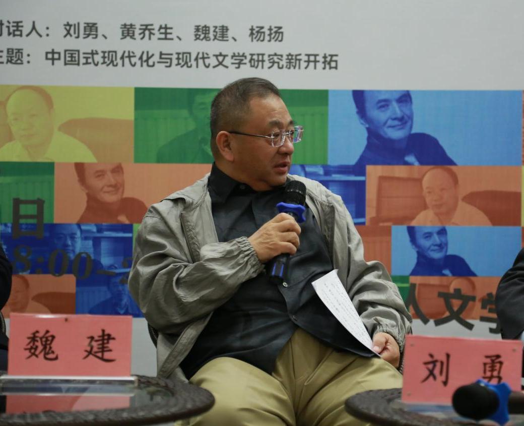 2023年11月17日晚,于金年会jinnianhuicom7号楼112教室,北京师范大学刘勇教授、中国人民大学黄乔生教授、山东师范大学魏建教授、上海戏剧学院杨杨教授为金年会师生带来题为“中国式现代化与现代文学研究新拓展”的学术对谈。活动由金年会jinnianhuicom赵顺宏教授和荆亚平教授主持,本科生、硕士生及部分教师参加。