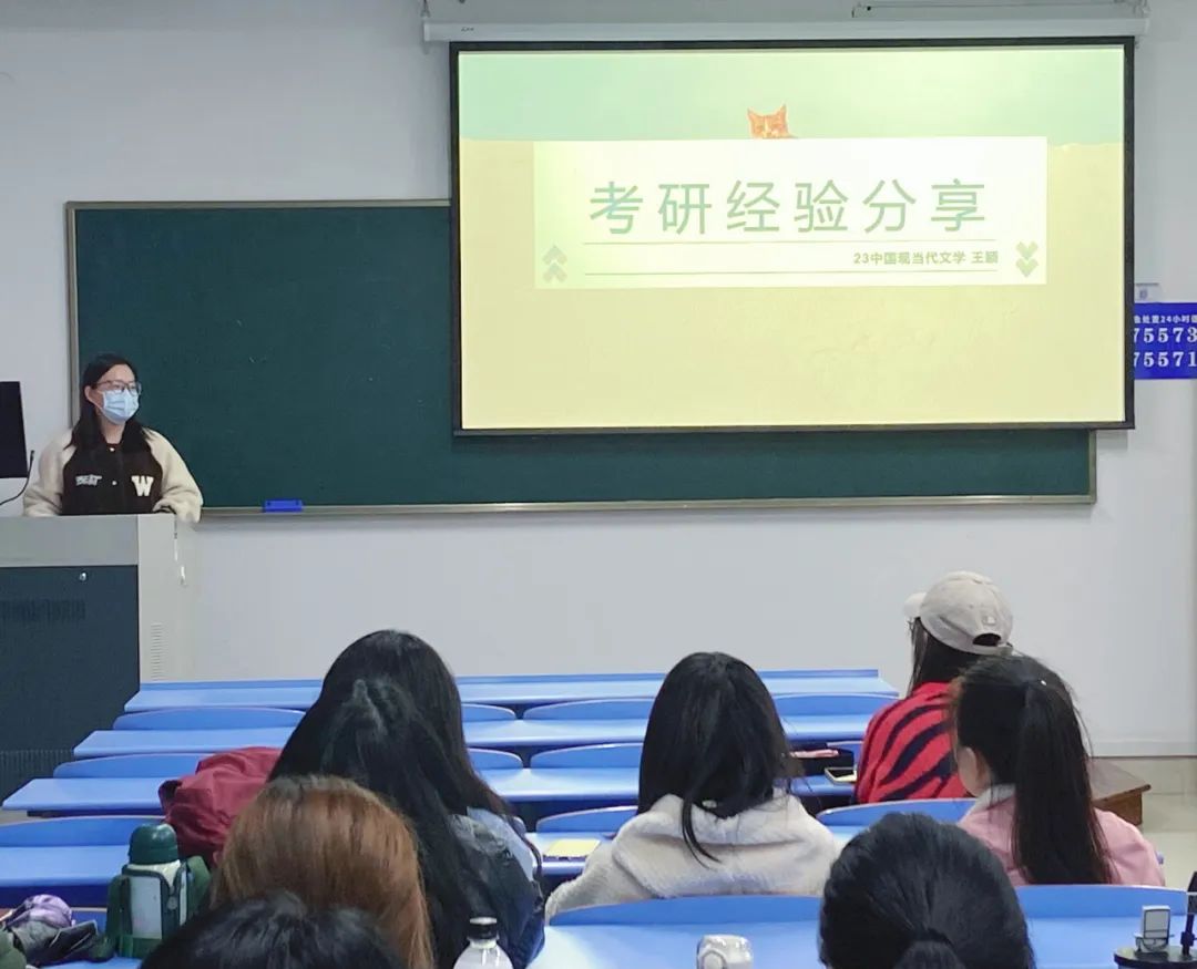 随后,楼逸秋老师指出,汉语言文学作为热门专业不仅在考公方面有广阔前景与独特优势,在考研方面亦是如此。对此,楼逸秋老师还邀请了2021级考研上岸浙江财经大学现当代文学方向的王颖同学为大家做线下分享。