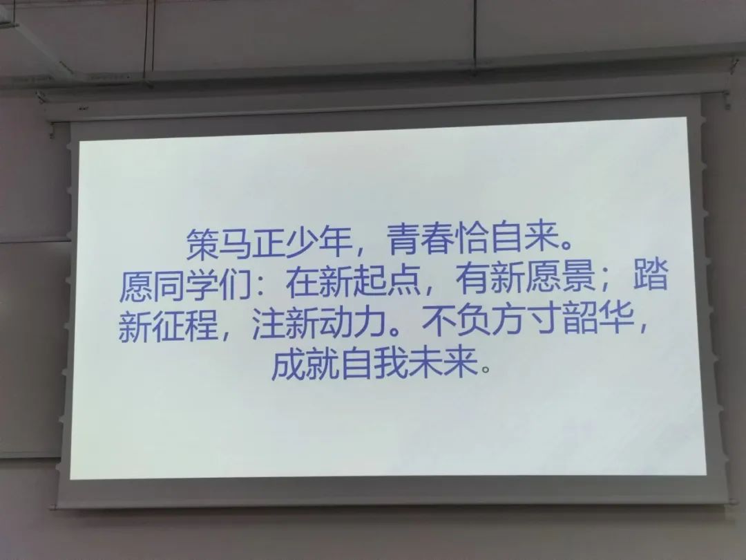 她也向同学们寄语:无畏山海,绽放光彩。言辞恳切,铿锵落地,她说:“策马正少年,青春恰自来。愿同学们在新起点,有新愿景;踏新征程,注新动力;不负方寸韶华,成就自我未来。”或许往后少年如风般气宇轩昂,白衣策马,八万里风与云,潇湘踏尽,回首依然如此心旌摇曳。