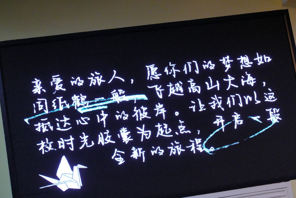 一约既定,万山无阻。为助力新生明确对未来的规划和加深新生对学院归属感,典礼设置了别开生面的“时光胶囊”活动环节,各班代表将班级同学写给“四年后的自己”的时光胶囊投入到邮筒中,这些承载着青春梦想与期许的时光胶囊被正式封存,等待四年后的再次开启,届时同学们将有机会重新回顾自己的成长轨迹,感受时间的力量与生命的奇迹。随后三位新生代表上台,读出自己的时光胶囊,播下初心的种子,许诺将在未来的日子里一往无前。