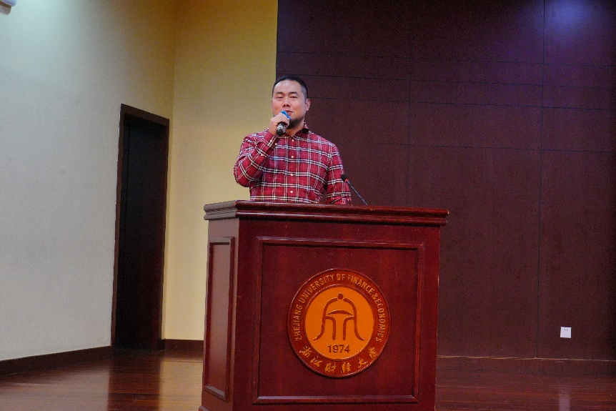 金年会优秀校友、2010届汉语言文字学研究生,嘉悦物产副总经理朱振伟校友与同学们分享了他在校园里的过往经历和深厚情感,表达了对浙财大变化的感慨与自豪,并对母校即将到来的50周年校庆表达了热情祝福与殷切期待。朱振伟校友的讲话鼓励同学们与母校同频共振,在岁月的洗礼下,一同开拓奋进,见证彼此的蜕变与升华,书写壮丽的成长史诗。