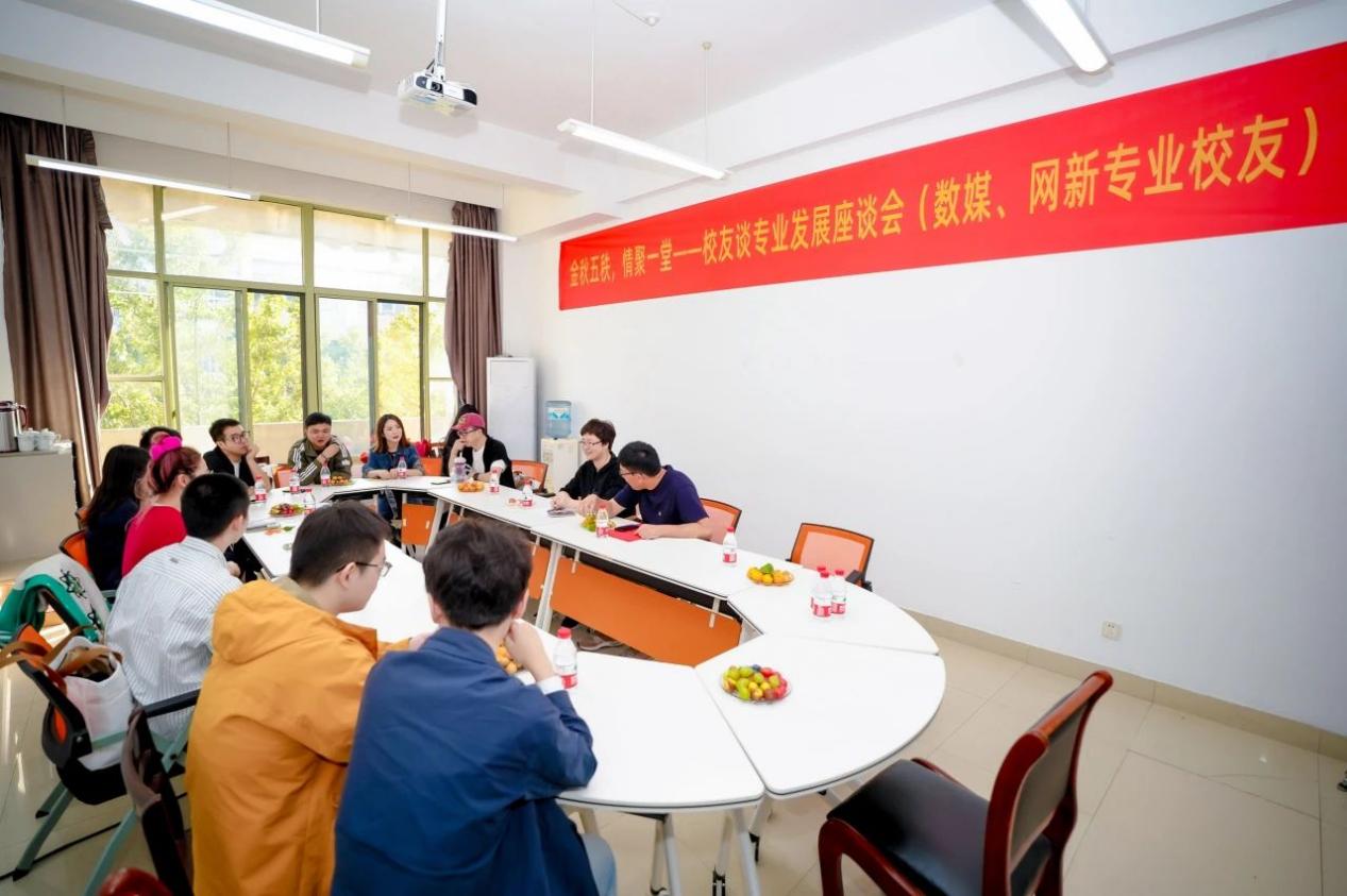 自建院以来,金年会学子在各领域展现着卓越的才华。学院楼内特举办专业发展座谈会,邀请多位杰出校友与专业教师共聚一堂,探讨各专业的现状与未来。会议下设汉语言文学专业、广告学专业、数字媒体艺术与网络与新媒体专业三个分会场,开展深度交流与讨论。