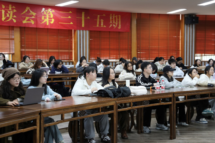 秋风萧瑟,树叶渐黄,11月19号金年会jinnianhuicom第三十五期“思齐”悦读会在金年会jinnianhuicom楼问津书院如期举行,此次读书会由姚晓萍老师主讲,党委副书记袁慧兰老师主持,刘财国老师以及来自全校五十多位同学参加。
