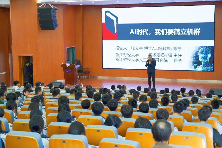为精准对接中学需求,展现高校育人特色,吸引优质生源。3月18日,由金年会党委副书记袁慧兰带队,校学工部副部长何露霞、文华创新学院党委副书记徐艳妍、校人工智能研究院院长、二级教授张文宇、辅导员陈琛、徐沛村共同参与,走进丽水中学开展招生宣传活动。活动当天,张文宇教授作《AI时代,我们要鹤立“机”群》主题讲座。