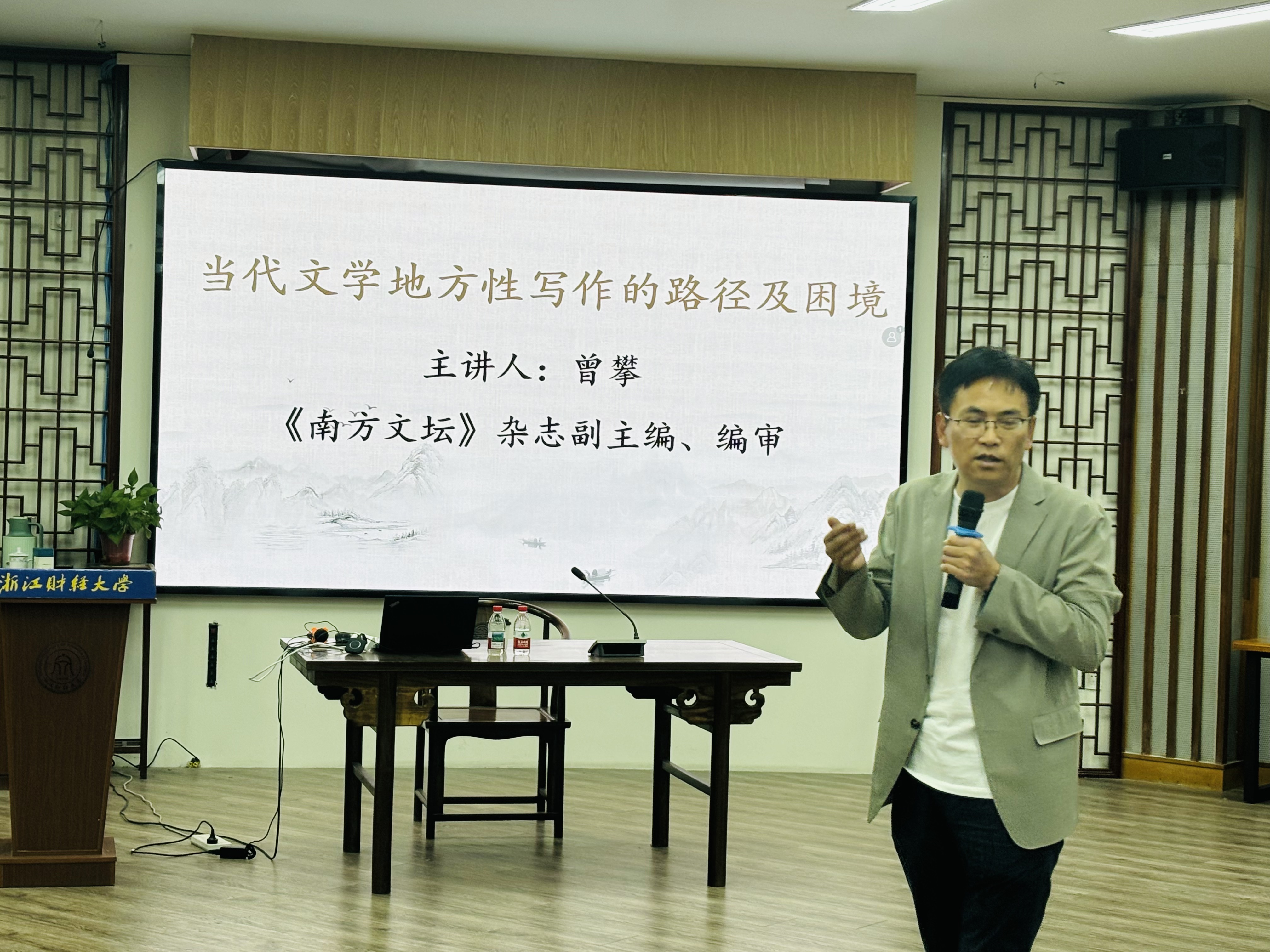 4月19日下午,由金年会jinnianhuicom主办的“当代文学地方性写作的路径及困境”主题讲座在7号楼问津书院举行。《南方文坛》杂志副主编、编审曾攀受邀作讲座,本次讲座由金年会jinnianhuicom周保欣教授主持,学院百余名师生到场聆听、学习。