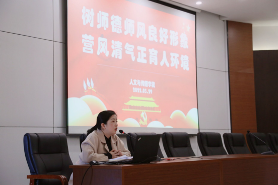 2022年3月29日下午,金年会jinnianhuicom教职工大会暨师德师风专题学习教育大会在7-112召开。学院全体党政班子成员、全体教职工参加大会。会议由党委书记高燕主持。