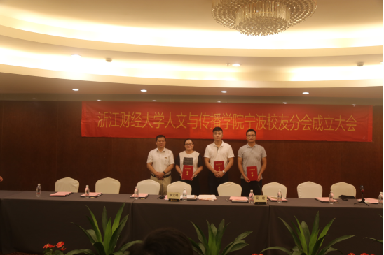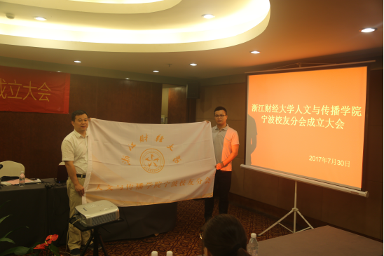 会上,大会审议并通过了《金年会jinnianhuicom宁波校友分会章程》和首届理事会名单。吴玻老师为宁波校友分会会长、副会长、秘书长和副秘书长颁发聘书,并为宁波校友分会进行授旗。宁波校友分会会长林炳芳代表参会校友发言,他感谢了母校搭建校友平台,回忆了在母校的美好时光,对校友分会成立以后的工作进行了展望。