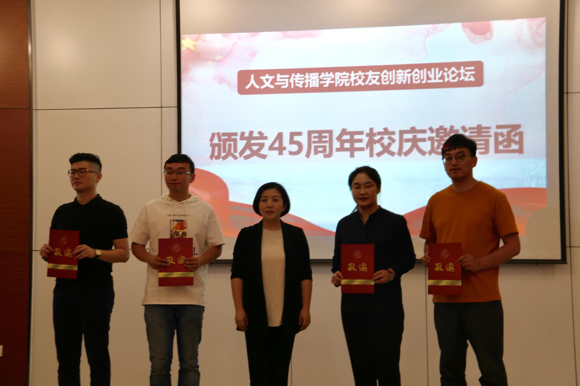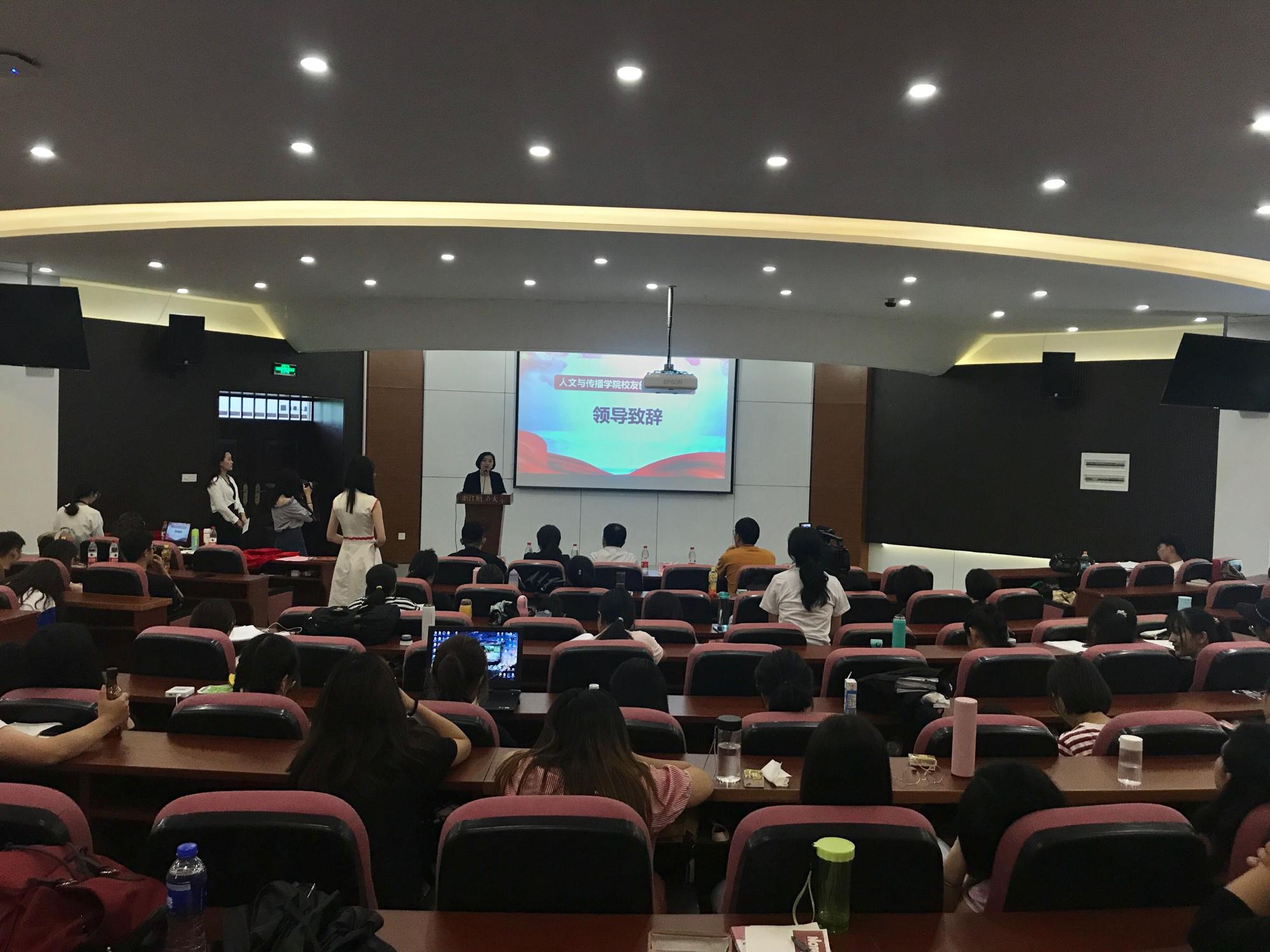 5月28日下午14:00,金年会jinnianhuicom校庆45周年系列活动之校友创新创新创业论坛在学院112报告厅举行。本次论坛邀请了金年会2008级数字媒体艺术专业毕业生、2011届汉语言文字学硕士毕业生,浙江智匠影视文化有限公司创始人赵国强、2009级广告学专业毕业生,杭州创业发展促进会秘书长、下城区青联委员张加林、2009级数字媒体艺术毕业生,嘉兴知白影像股东合伙人汤凯文和2012级广告学毕业生,杭州翰宇建筑咨询有限公司董事,上海芾洲企业管理咨询有限公司董事,浙江聚耀成建筑公司总经理詹天卓四位创业校友与学生畅谈创新创业。学院党委书记高燕、副书记吴玻出席了本次活动,学院近200位学生参加。