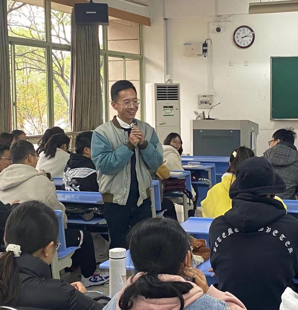 讲座伊始,于洋老师给同学们展示了四位优秀的播音主持大咖的经典音频,从而引出了“好声音”的标准,即口齿清晰、音量适当、合身份、有条理、有温度。接着,从播音专业角度解读了《红楼梦》片段,分析了说话有条理的优势所在。然后,用承德农民工于大叔朗诵《再别康桥》的例子,充分论证了朗颂时对文本投入情感的重要性。
