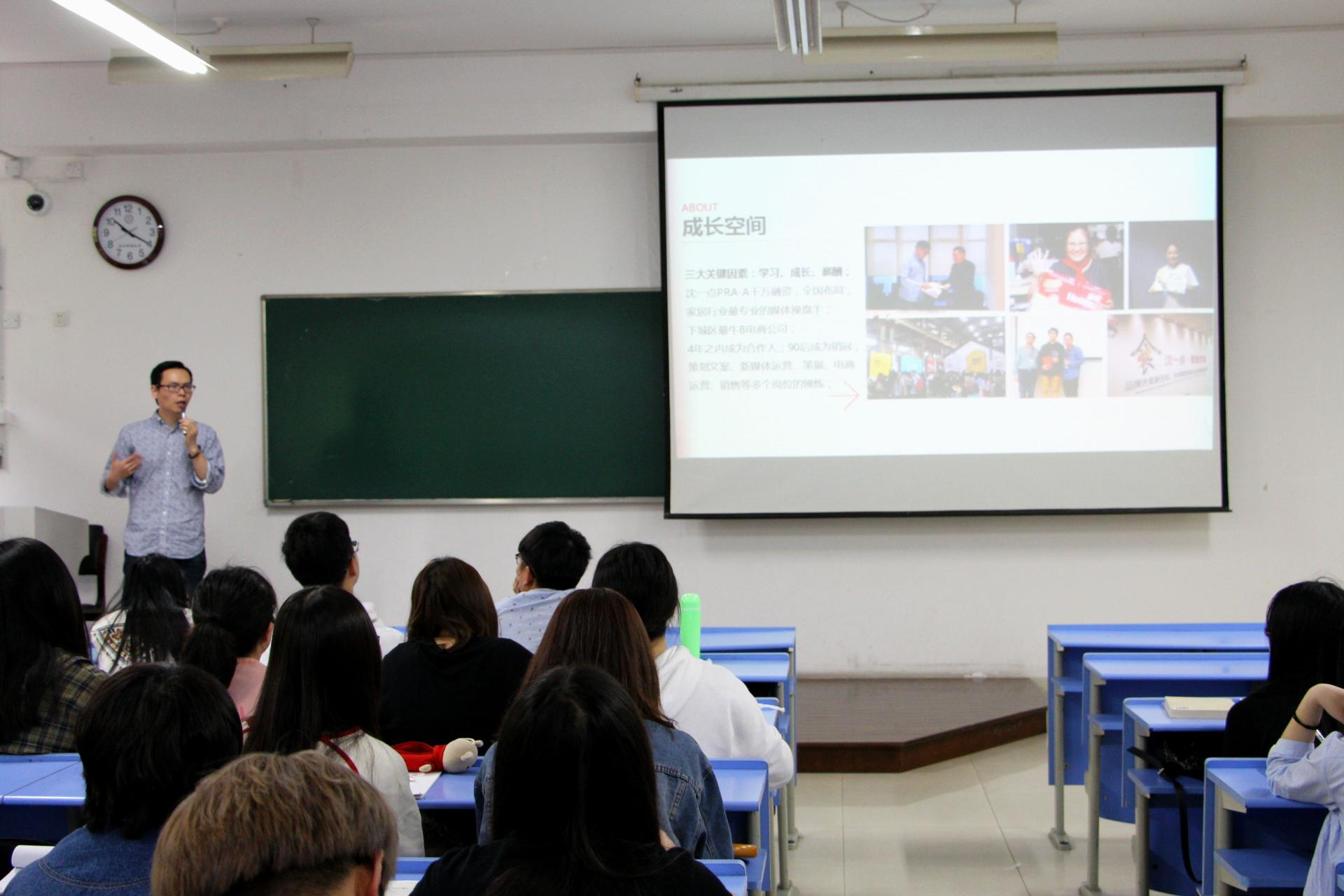 此次讲座由李漪老师主持,特别邀请到“广策传媒”弄房子家居事业部的总经理金光庭以及人事部经理陈松来进行宣讲,金年会14级同学踊跃参与,现场座无虚席。