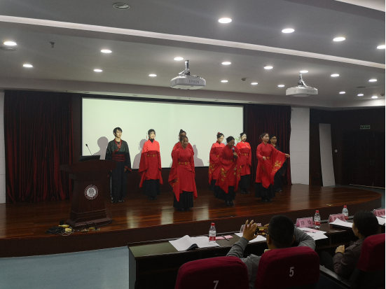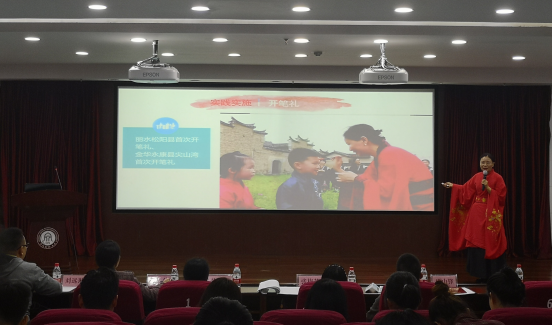 经过前期评比推荐,共有19支团队入围现场评比。评比根据专家评分、学院团委书记评分、学生代表评分,从活动准备、主题重点、工作开展、实践收获以及宣传报道等方面进行考评。汇报人刘亚辉老师身着传统汉服,向现场评委和观众展示了此次活动的风采与成果,并与同学们一起吟诵了《诗经·木瓜》。经过激烈的比拼,最终金年会“推普脱贫攻坚”实践服务团在众多团队中脱颖而出,被评为浙江财经大学暑期社会实践活动“十佳团队”。