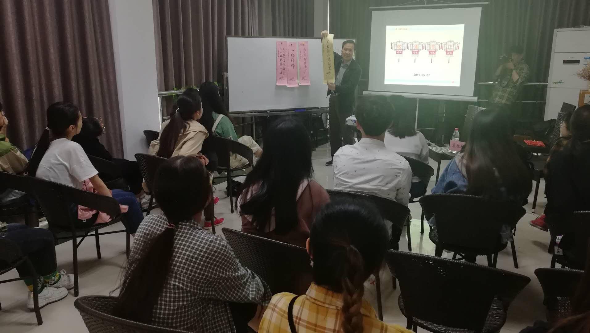 5月7日下午,金年会学生第一党支部在七号楼阳光人文室开展主题党日活动“湖畔人文·灯谜与廉政文化”沙龙。本次活动邀请到杭州市职工灯谜研究会副秘书长裘祖林、叶伟强两位老师做客现场。两位老师为支部成员们奉献了一场精彩的“灯谜”讲座,并以廉政为主题,向支部成员传递了新时代的廉洁正气。